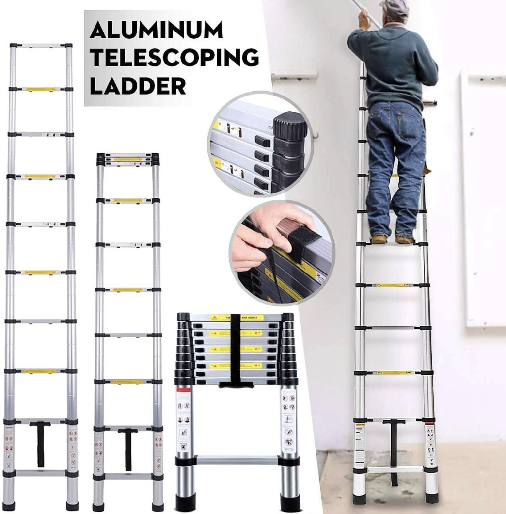 It is a the perfect partner for both commercial and home use, such as window washing, painting, repairing a roof, exterior/interior decorating, pruning plants, etc. These Telescopic extension ladders differ from traditional ladders in that they make carrying and storing more convenient and take up less space.