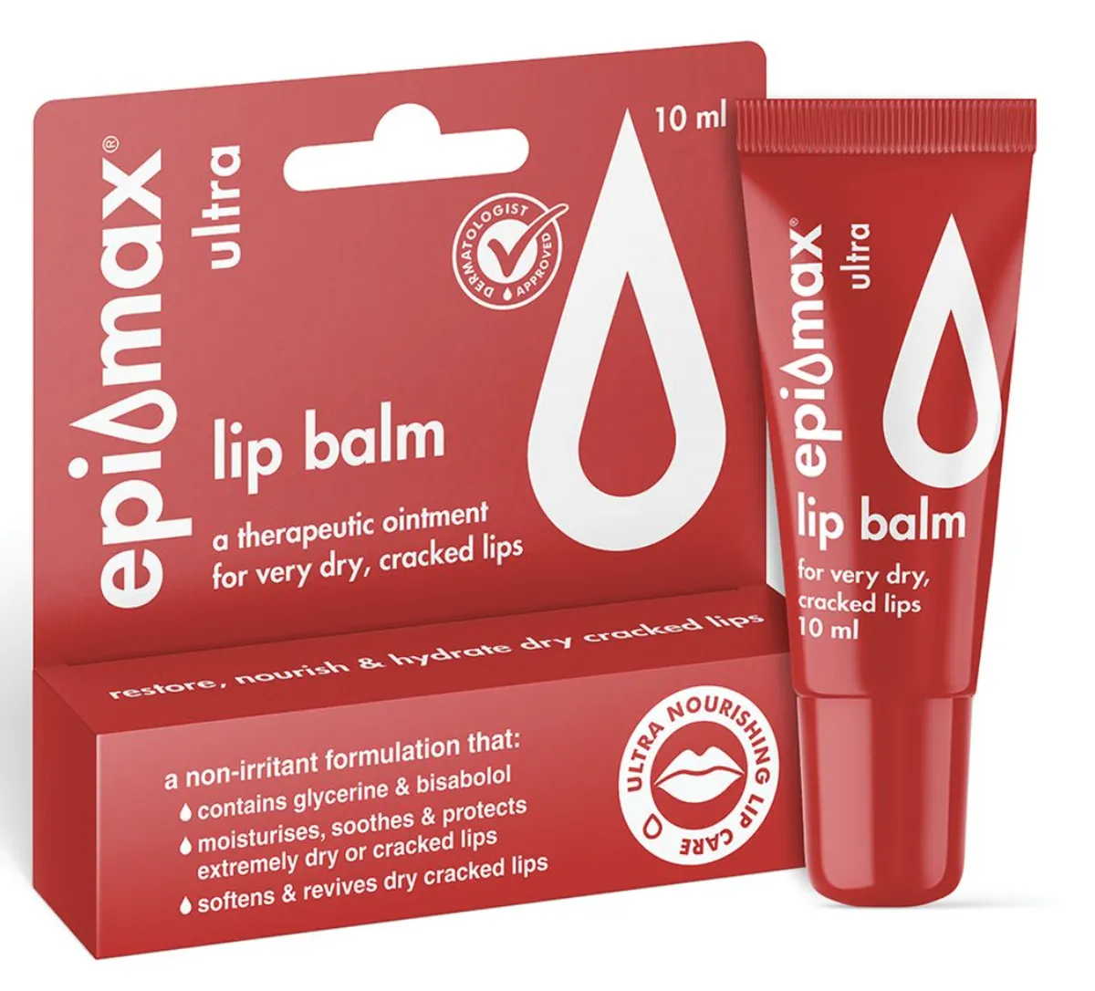 Dermatologist approved Epi-max Ultra Lip Balm is a therapeutic ointment that restores, nourishes and hydrates very dry, cracked lips. It is a non-irritant formulation containing glycerine, bisabolol and d-Panthenol. It can be used as frequently as needed to moisturise, soothe and protect extremely dry or cracked lips. The ingredients create a protective barrier, reduce moisture loss, help skin regeneration and healing. Epi-max is the No.1 emollient moisturiser in South Africa. Buy Epi-max, Buy Proudly South African.