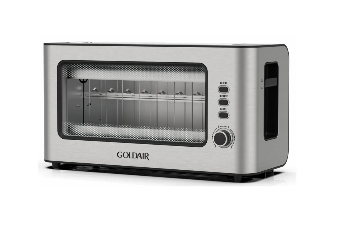 Goldair 2 slice toaster with glass window. 6 variable browning controls.