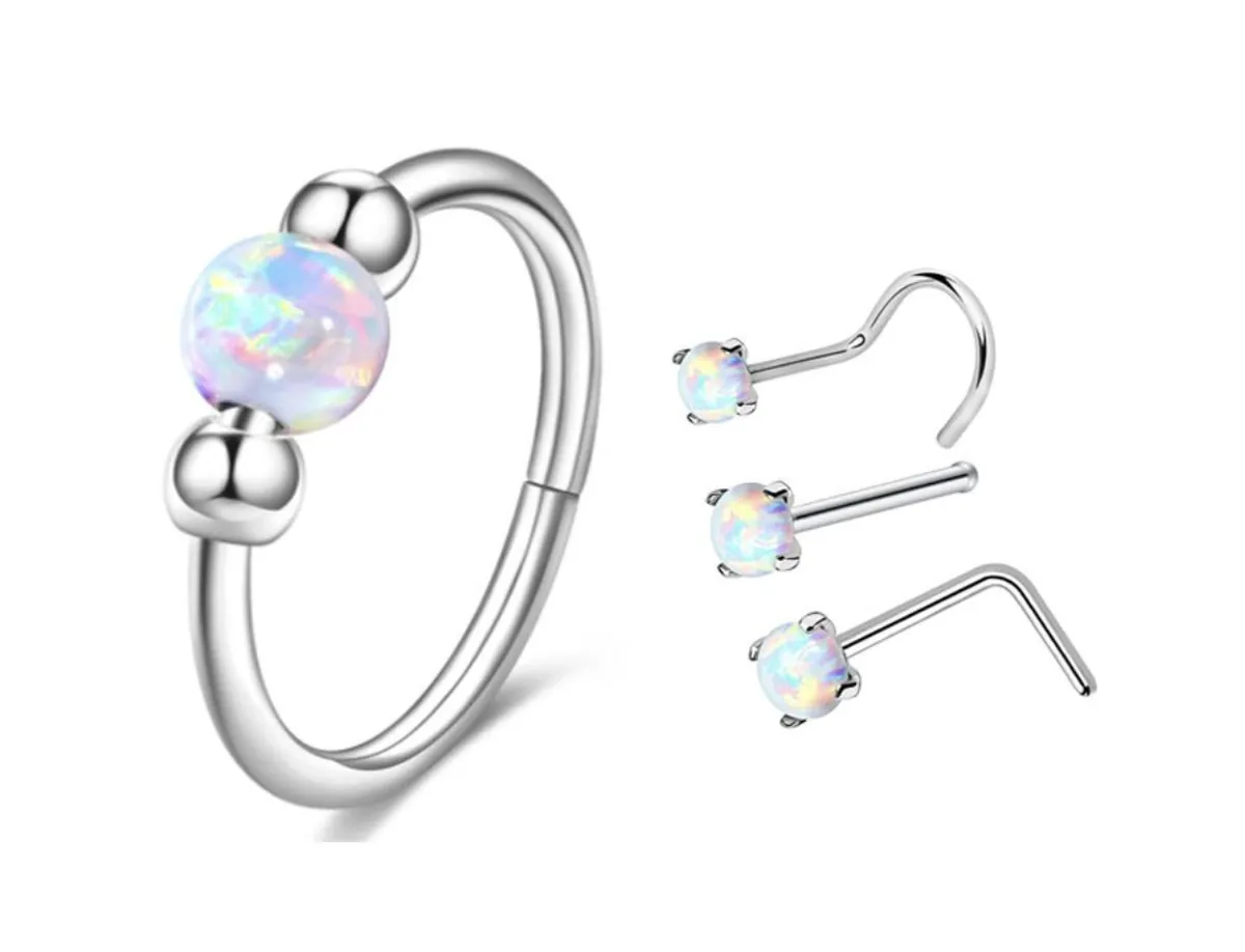 Contains 1pcs white opal beaded nose hoop and 3pcs nose studs. Good Ideal Gift to Yourself or Lover.