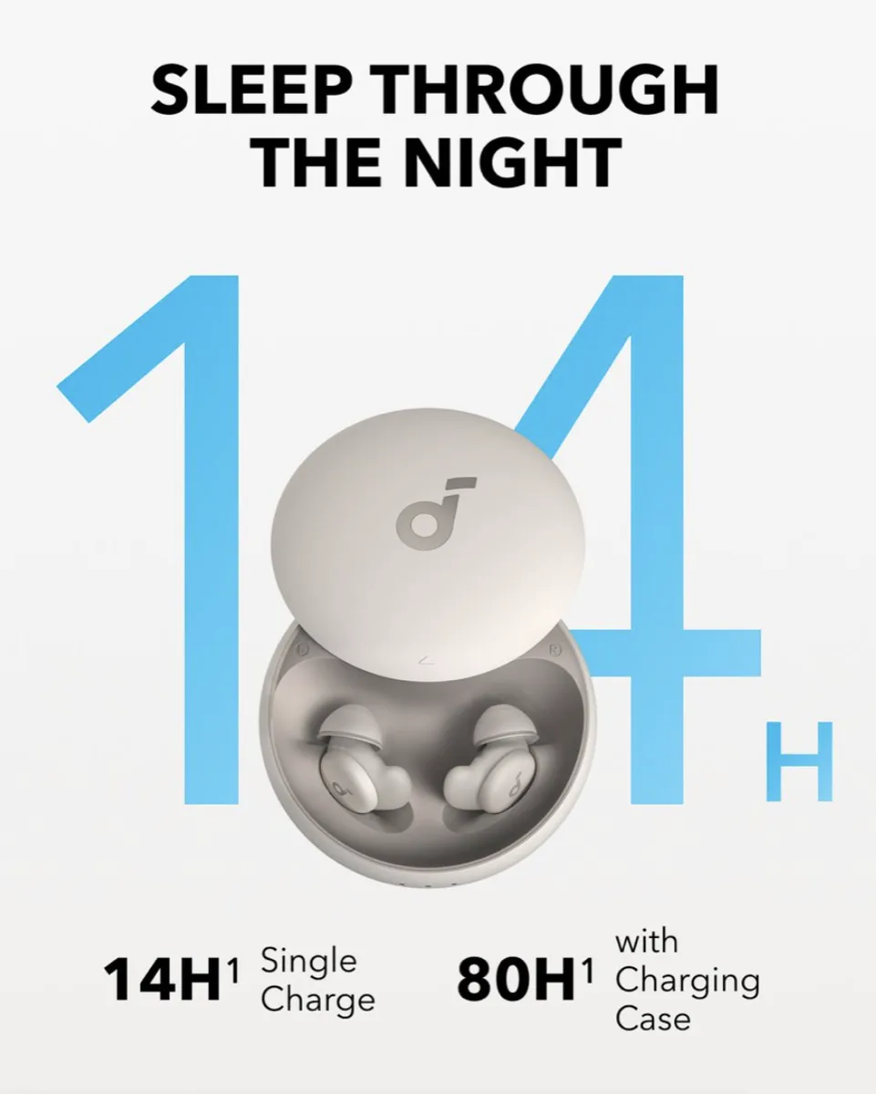 The Soundcore Sleep A20 Earbuds are specially engineered tiny sleep earbuds designed to help you fall asleep faster and stay asleep longer. Built for comfort and passive noise blocking, they are ideal for light sleepers and side sleepers.