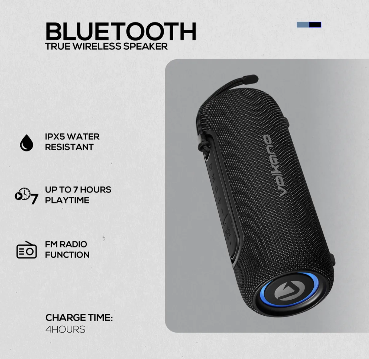 With up to 7 hours of playtime on a single charge and a handy carry strap, the Volkano Bluetooth Speaker is your ultimate grab-and-go sound companion.